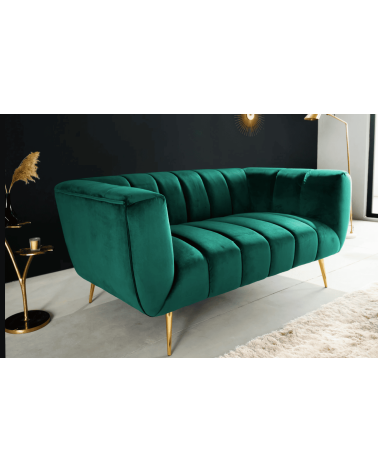 Il divano NOBLESSE 165 cm combina un'estetica moderna e un comfort ottimale. Il suo rivestimento in velluto verde smeraldo aggiunge un tocco di raffinatezza al tuo soggiorno, offrendo una texture morbida e piacevole al tatto.