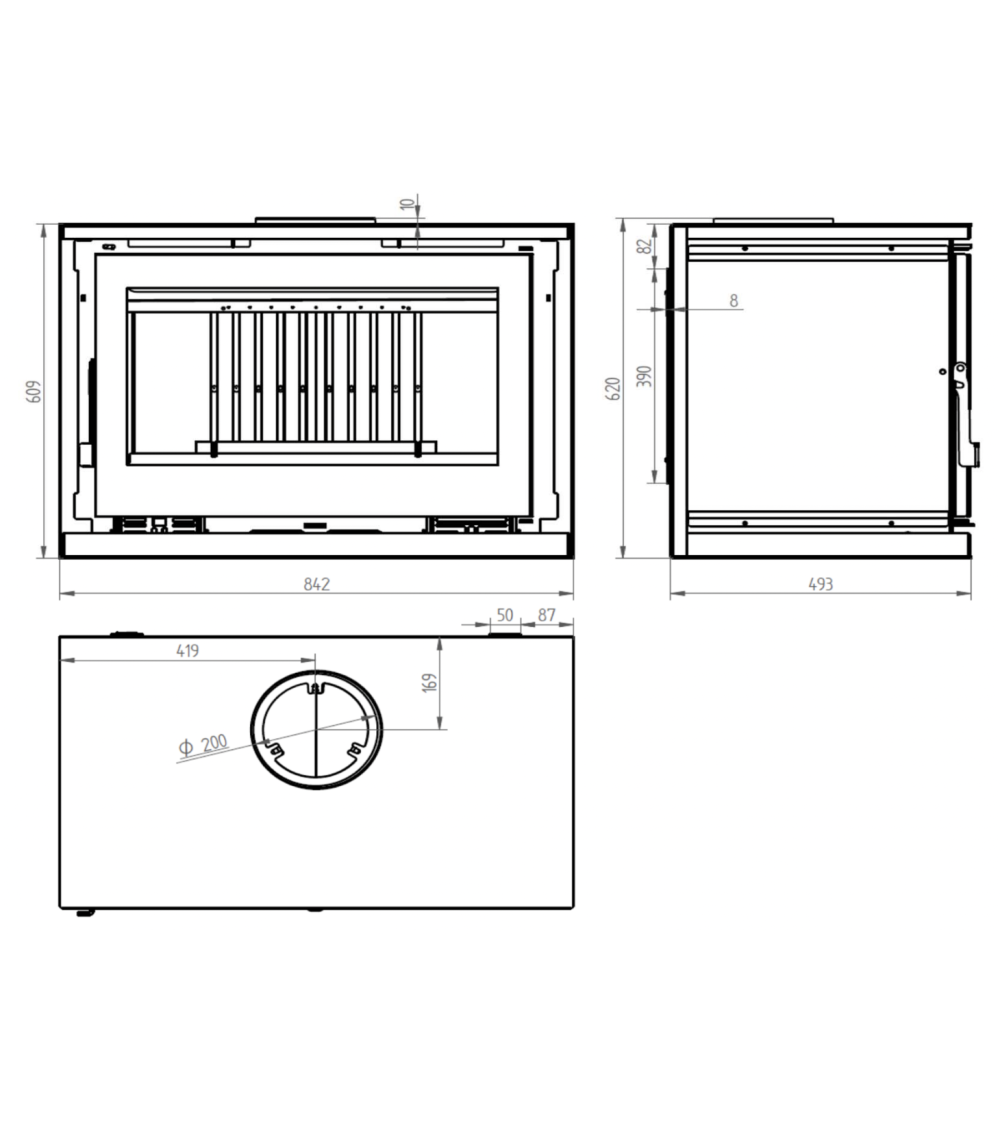 La doppia camera in vermiculite assicura un'ottima isolazione, mentre i ventilatori integrati diffondono il calore in modo uniforme. Inoltre, il vetro serigrafato offre una vista unica sulle fiamme mantenendo una temperatura elevata.