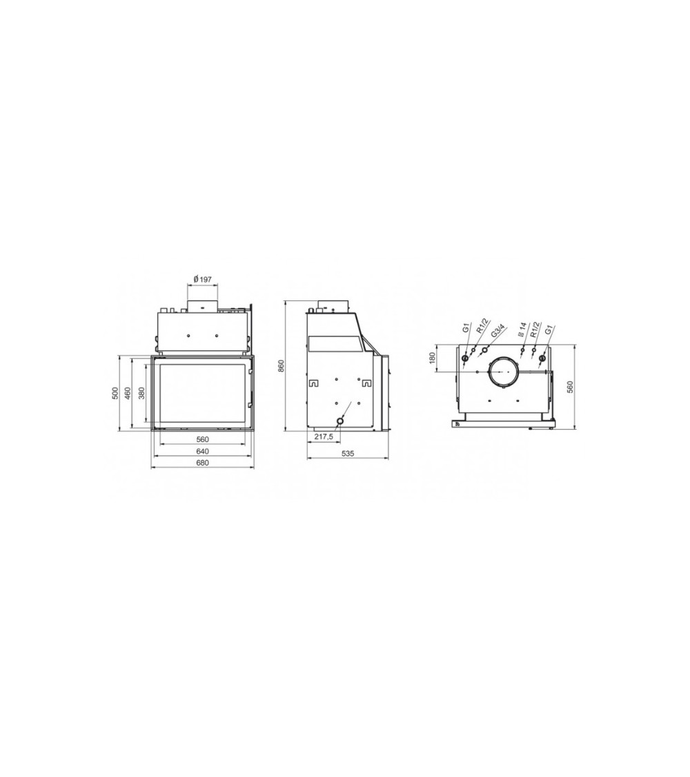 L'inserto misura 68 cm di larghezza, il che lo rende una soluzione compatta ed elegante per il tuo caminetto esistente. Le sue dimensioni consentono una facile installazione in diversi spazi fornendo allo stesso tempo una potenza riscaldante sufficiente per ambienti di medie e grandi dimensioni.