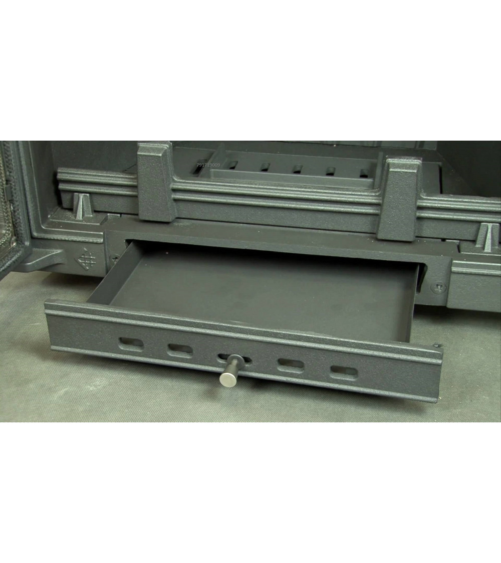Un cassetto per la cenere in cui si accumulano i resti del legno bruciato.