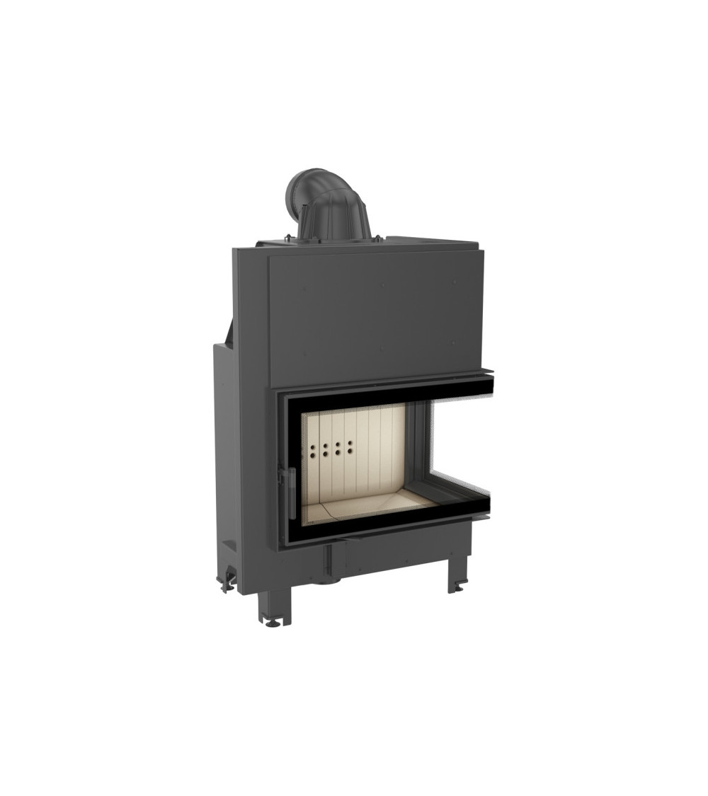 - Inserto per caminetto con due lastre di vetro compilate con l'altra ad angolo (senza staffe).