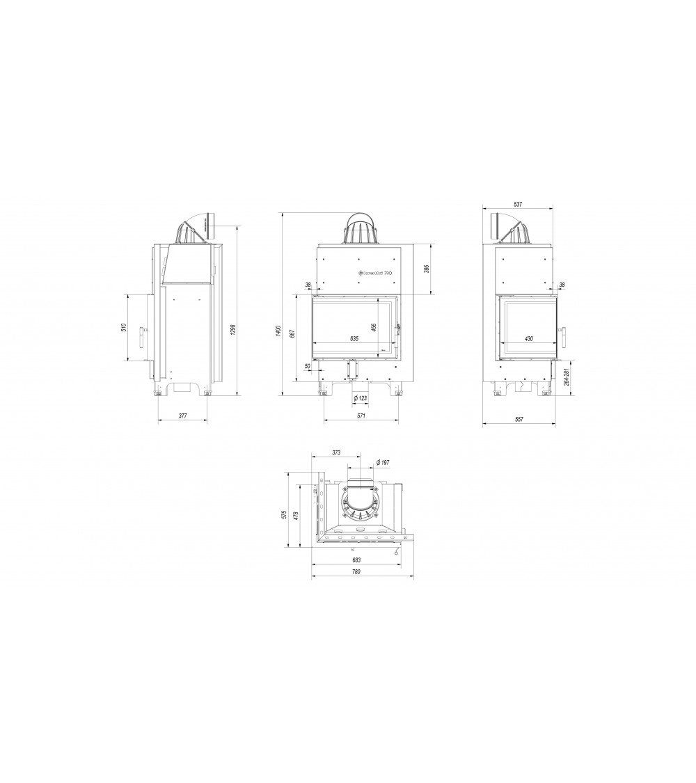 - Triplo sistema d'aria della camera di combustione: aria primaria diretta alla piastra di combustione; aria secondaria fornita attraverso fori nella parete posteriore. Inoltre, è stato applicato il sistema di vetro ad aria pulita (curtain air).