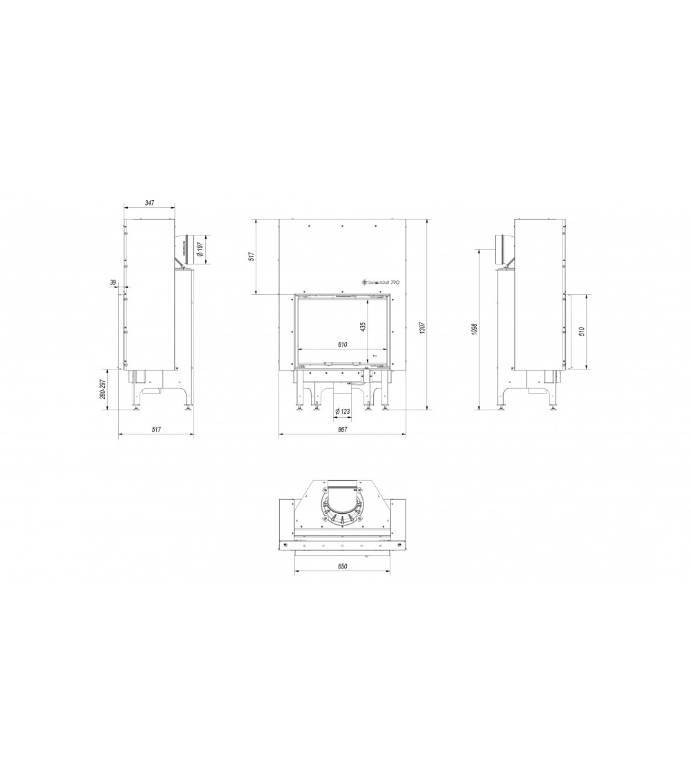- Vetro decorativo e resistente al calore, in grado di sopportare temperature fino a 660 °C. Conferisce al caminetto un aspetto moderno ed elegante, ingrandendo visivamente la parte anteriore dell'inserto.