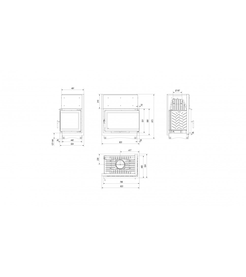 - Massimo sfruttamento del calore grazie ai radiatori distanziati ad alta densità e alla parete dell'inserto in ghisa di alta qualità con uno spessore di 8 mm.