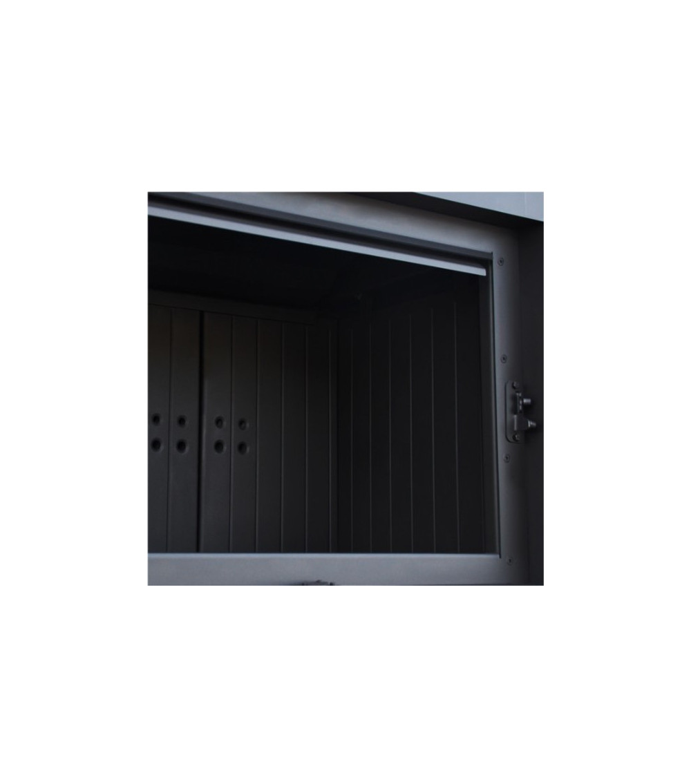 - Inoltre, questo inserto è dotato di sistema Clean Galss (barriera d'aria), in modo che l'aria venga fornita direttamente al vetro attraverso un sistema di canali situati sui lati del caminetto. In questo modo l'ossigeno viene fornito alla parte superiore della camera di combustione, dove i gas prodotti durante la combustione del legno vengono post-combustionati. Allo stesso tempo, riduce l'emissione di CO nocivo nell'atmosfera.