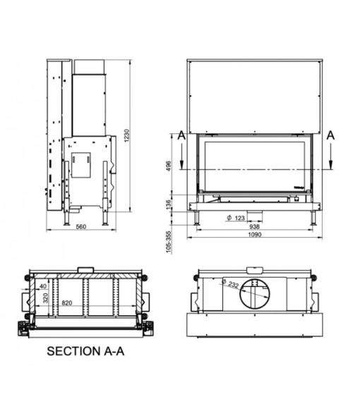 - Sezione totale minima dell'uscita dell'aria di convezione: 1225 [cm 3 ]