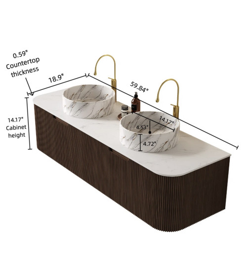 Il piano in marmo artificiale resistente all’acqua e il sistema di cassetti silenziosi offrono comfort e modernità. Che tu desideri uno stile minimalista o più accogliente, questo mobile si adatta con eleganza.