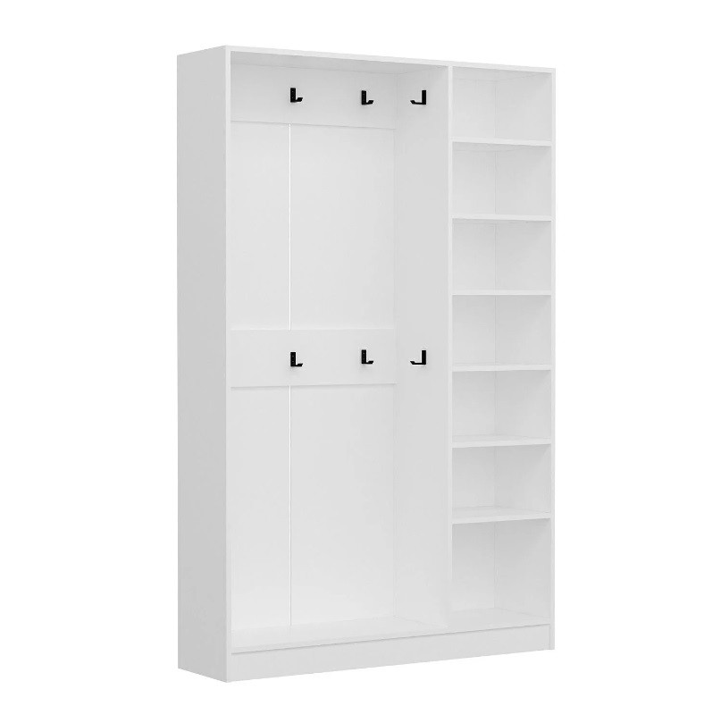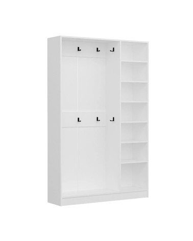Dietro due delle ante scoprirai uno spazio sapientemente arredato con diversi ganci appendiabiti. Questi ganci offrono un posto comodo dove appendere cappotti, borse e accessori, garantendo un ingresso ordinato e accogliente. La disposizione interna è stata progettata per massimizzare lo spazio per appendere, mantenendo i tuoi oggetti essenziali a portata di mano.