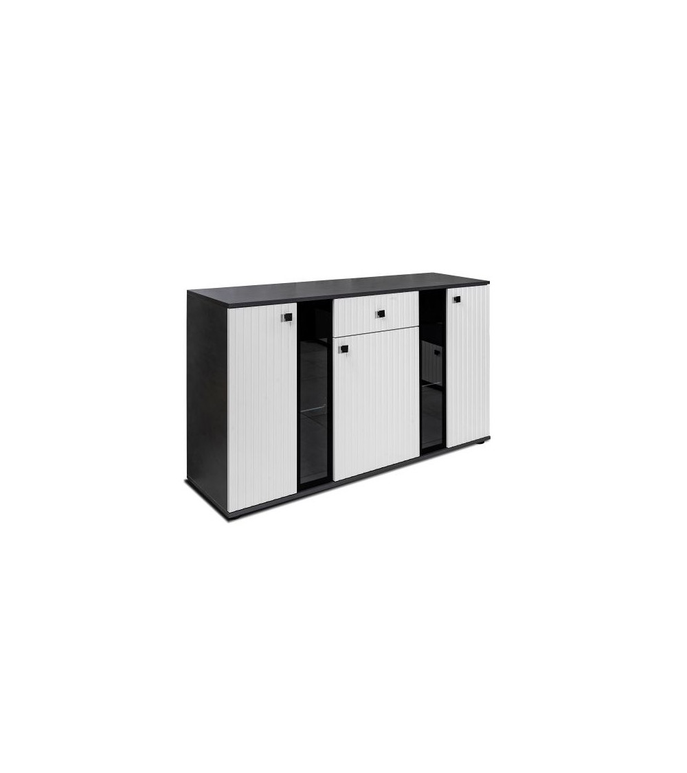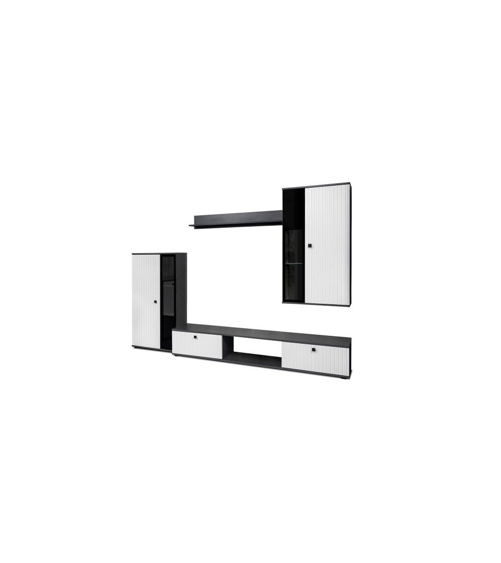 Le meuble bas est le point central de cet ensemble. Il offre un vaste espace de rangement pour vos équipements électroniques, vos consoles de jeux, vos DVD et bien plus encore. Doté de deux portes et d'une case centrale, ce meuble bas combine style et praticité.
