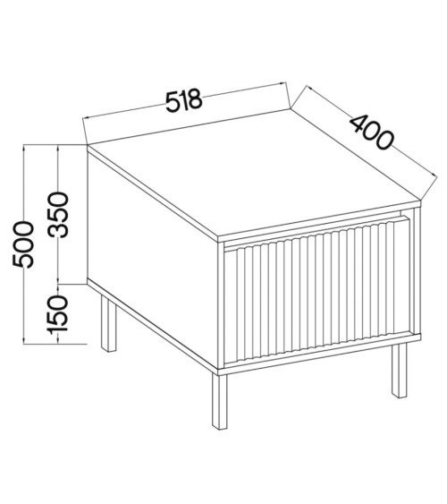 | MATERIALI | Pannello MDF da 16 mm scanalato – finitura rovere Pannello laminato da 16 mm – nero Bordi ABS – beige sabbia Piedi in metallo nero |