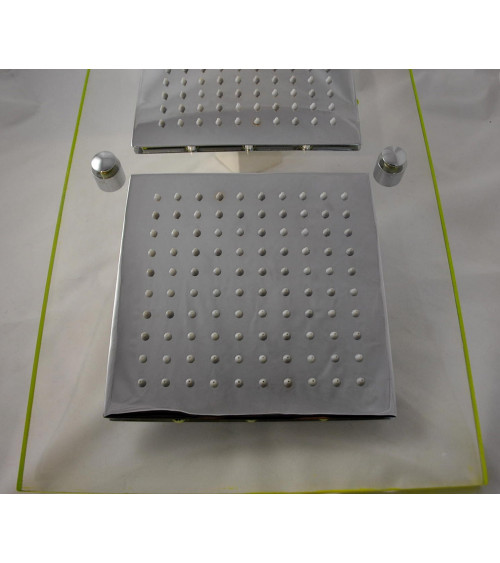 Soffione doccia di design con luce cangiante. Il colore dipende dalla temperatura dell'acqua! Attacco in ottone Dimensioni: 8 cm x 8 cm x 8 cm...