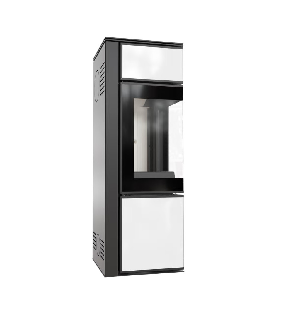 Il design rettangolare della stufa a legna TORA è elegante e pratico. Le sue linee pulite e la sua forma geometrica aggiungono un tocco moderno alla vostra casa. L'ampia porta in vetro della stufa permette di ammirare la bellezza delle fiamme danzanti, aggiungendo una dimensione visiva rilassante e accogliente al vostro spazio abitativo. Il vetro resistente alle alte temperature offre una visione chiara e sicura del fuoco, aggiungendo un'atmosfera calda all'ambiente.