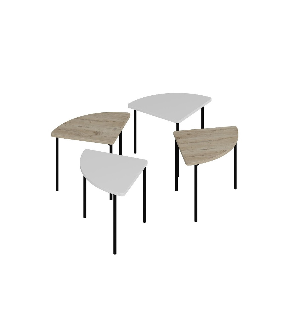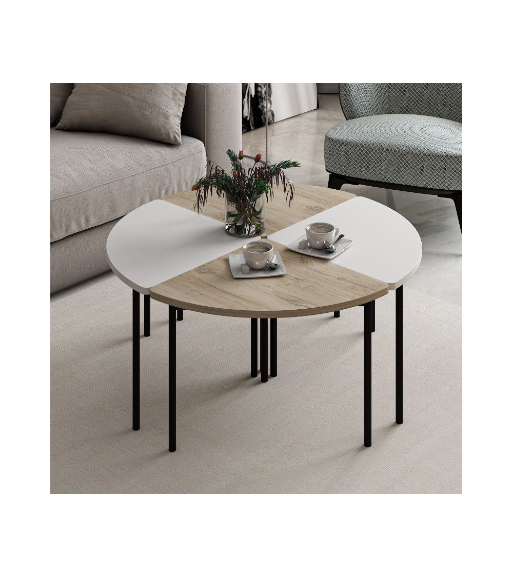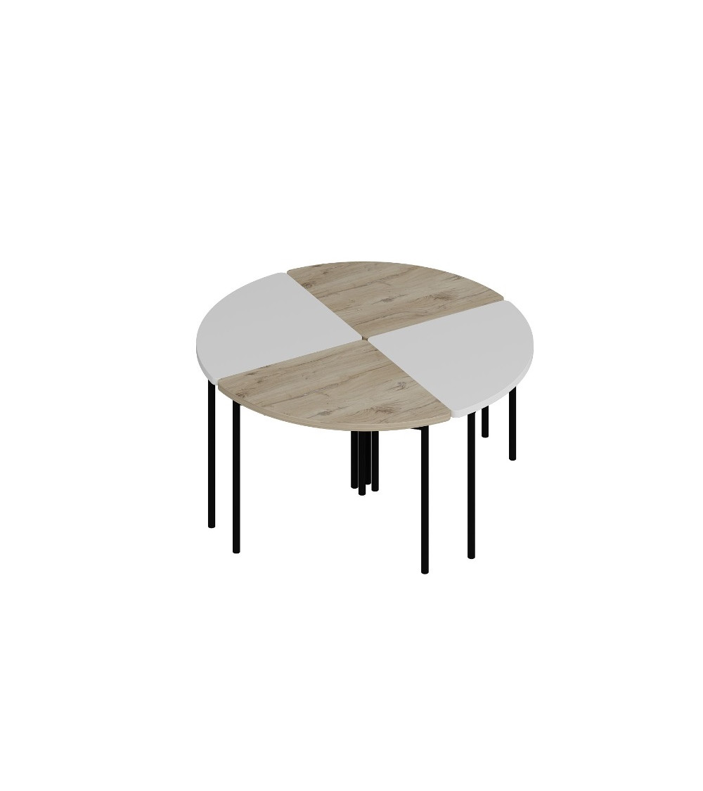 Questo design modulare consente flessibilità di utilizzo, dandoti la possibilità di creare un tavolo rotondo completo o disporre i pezzi separatamente in base alle tue esigenze e preferenze.