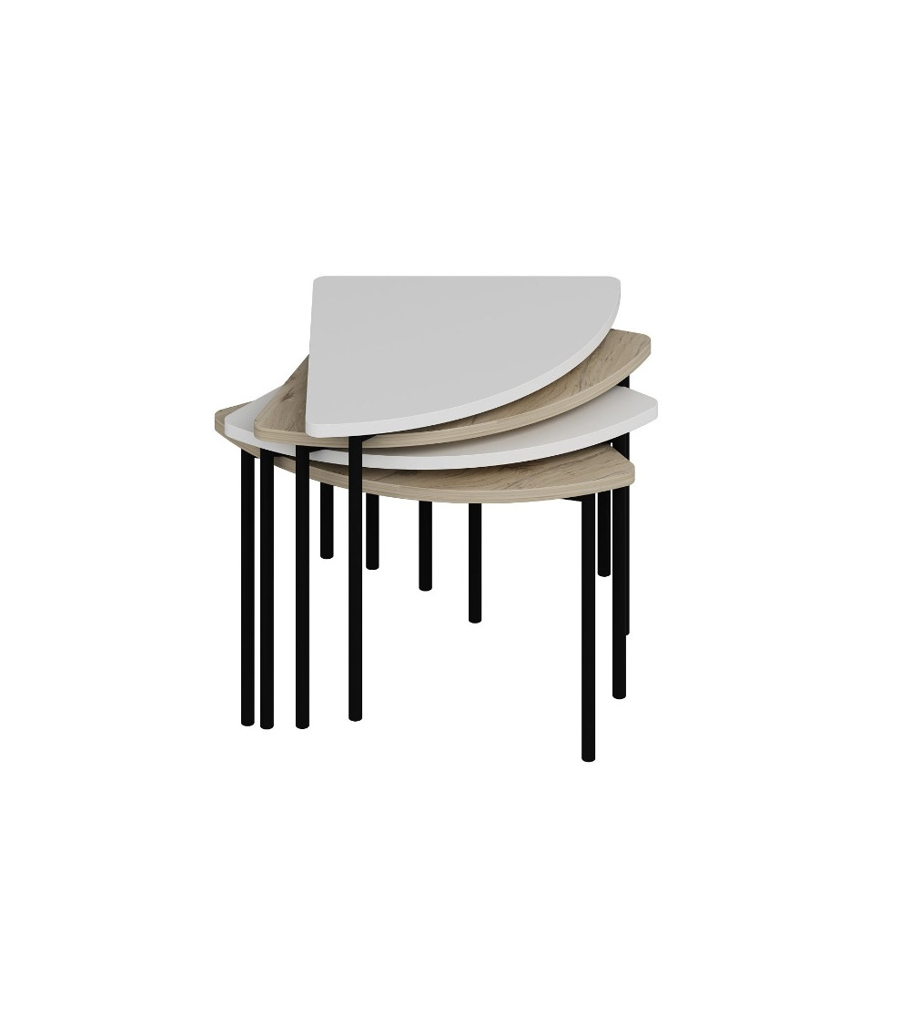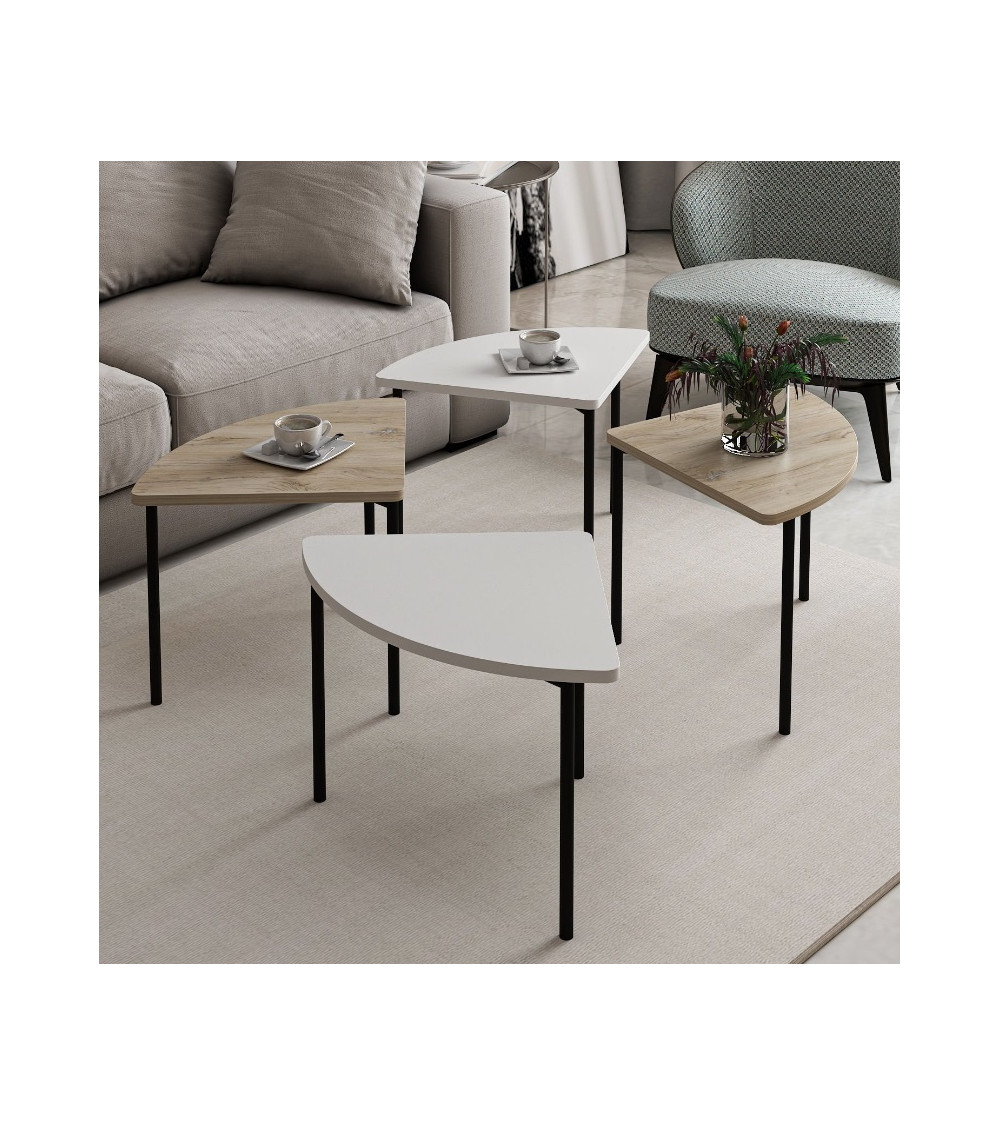 Scopri il nostro tavolino EMMA innovativo e versatile, progettato per adattarsi alle tue esigenze e al tuo spazio. Questo tavolo è composto da quattro pezzi separati che, una volta assemblati, si trasformano in un elegante tavolo rotondo di 90 cm di diametro.