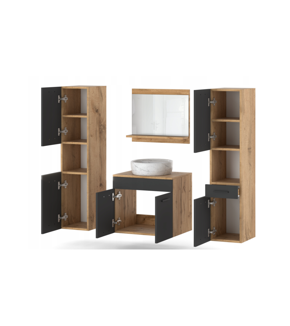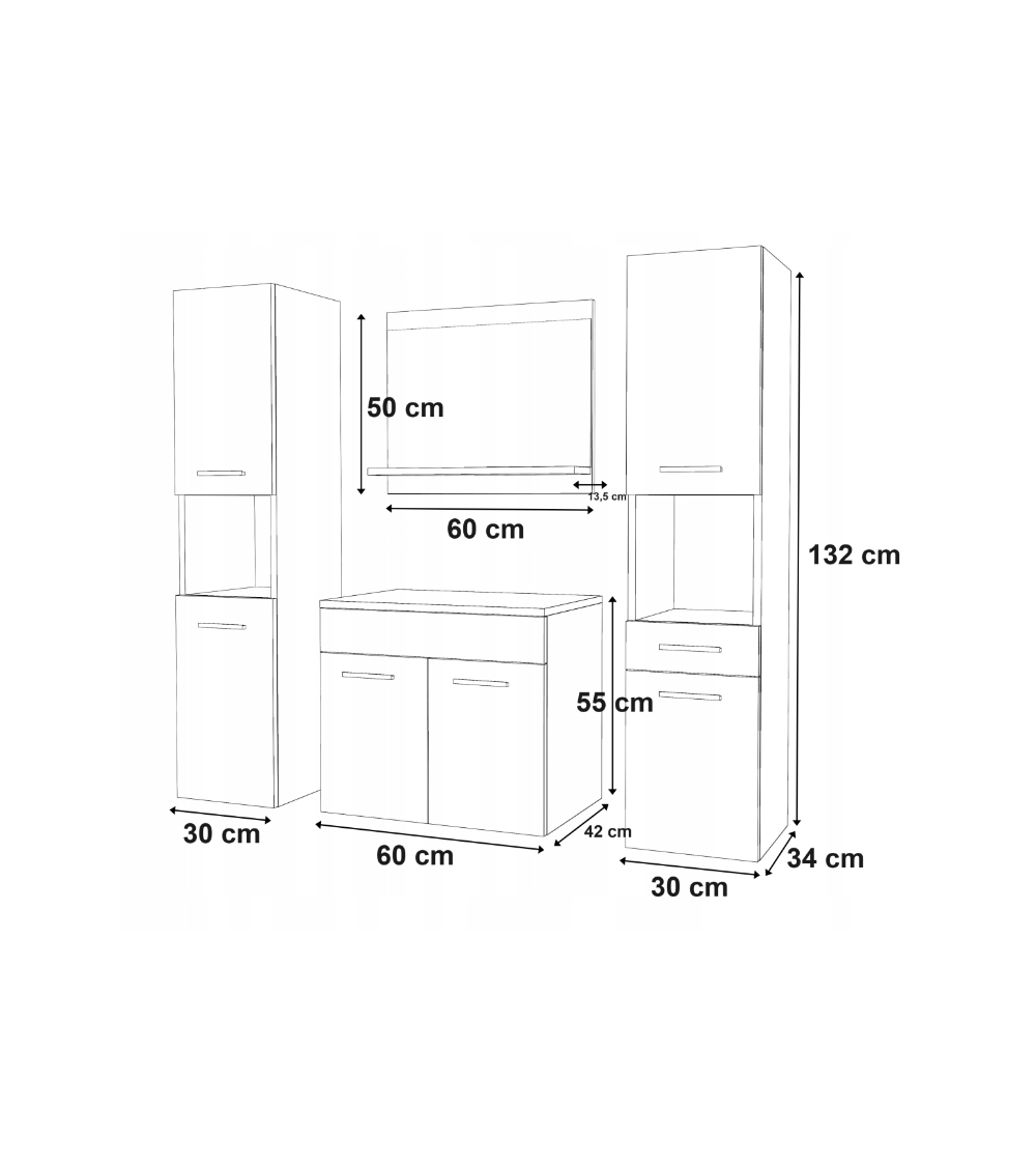 Meuble bas L60 cm + Vasque intégrée + 2 colonnes L30 cm+miroir