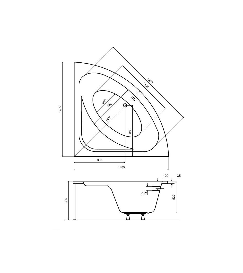 Afmetingen: 148 x 148 x 65,5 cm