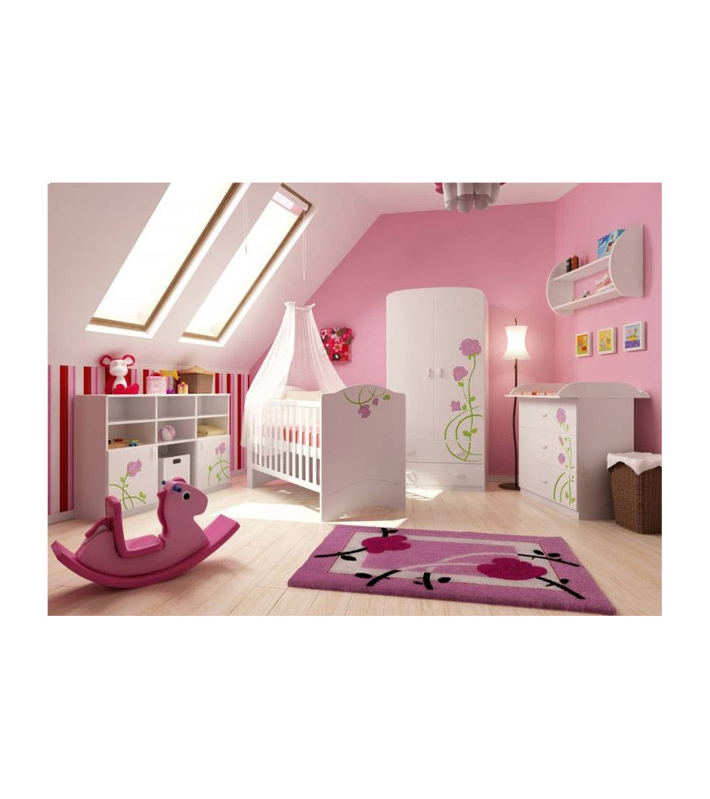 C'est la chambre de fille par excellence, la pureté de la couleur blanche se combine avec se rose si délicat... Tous les meubles sont ornés de ce beau motif de Rose. Ce mobilier enchantera pendant longtemps par ça beauté et son confort votre enfant.