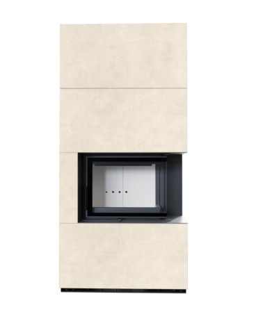 Dubbelzijdige BS-beglazing met gegroefd luik. Past perfect in de stijl van moderne interieurs. Dit type haard wordt vaak gekozen voor open ruimtes.