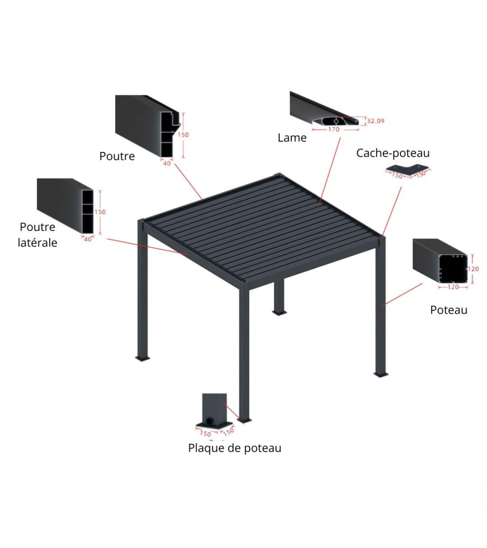 Creëer een elegante en functionele buitenruimte met deze hoogwaardige pergola van 3x3 meter. Met zijn eigentijds design, kwaliteitsmaterialen en innovatieve technische oplossingen biedt hij optimaal comfort het hele jaar door.