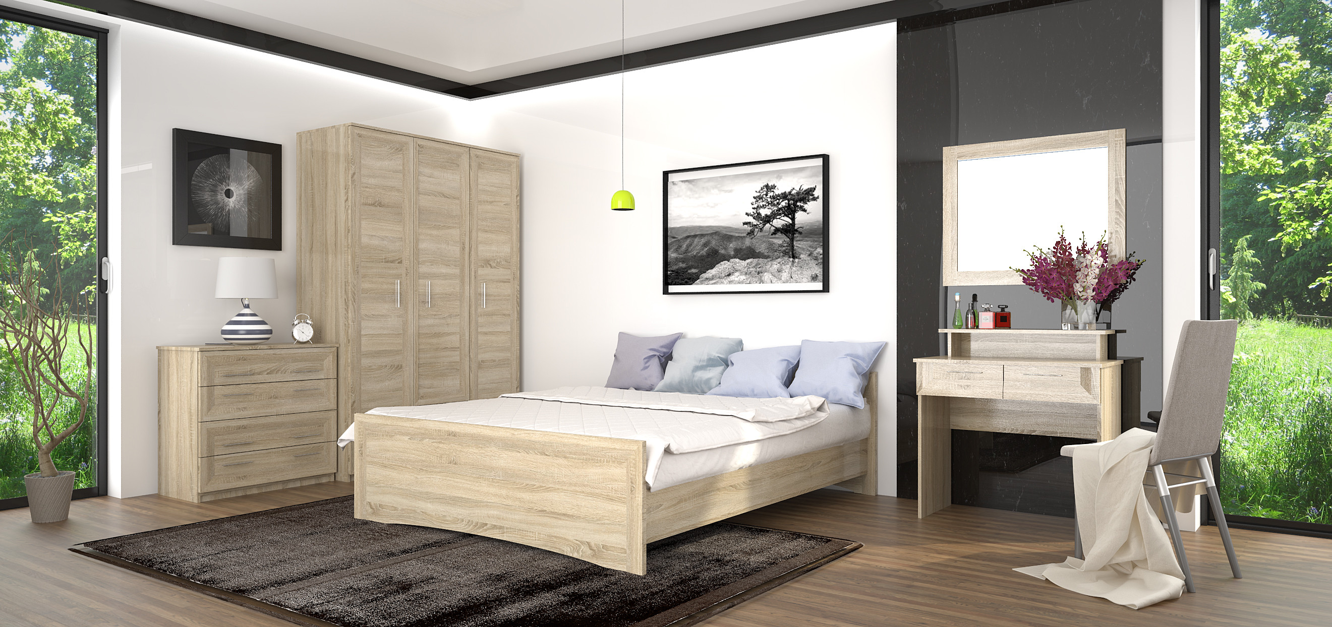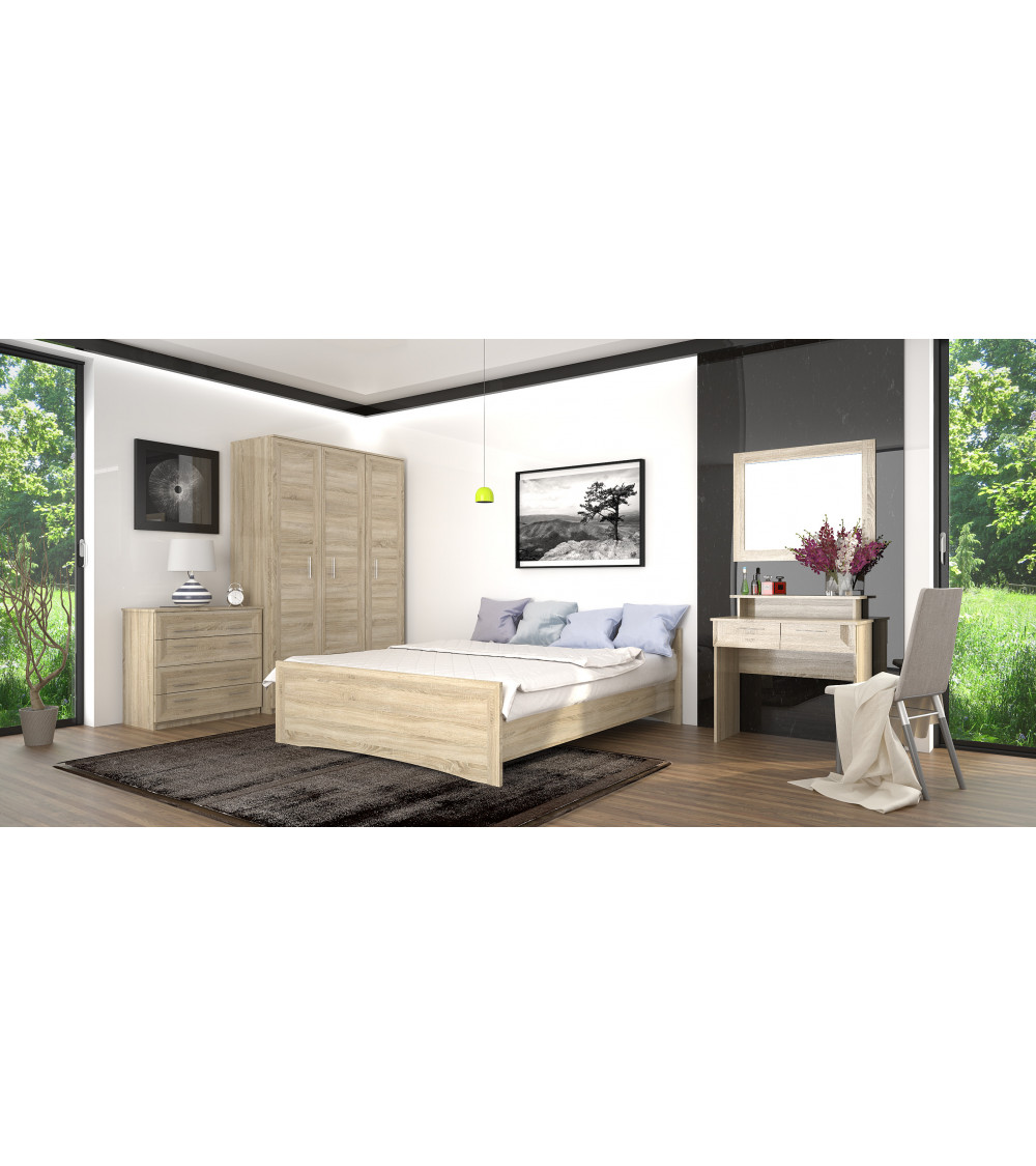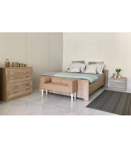 Chambre complète LAURA : Dimensions : ( L x H x P ) - Lit ( couchage 160x200cm ) : 166 x 60 x 200 cm - Commode ( 4 tiroirs ) :...