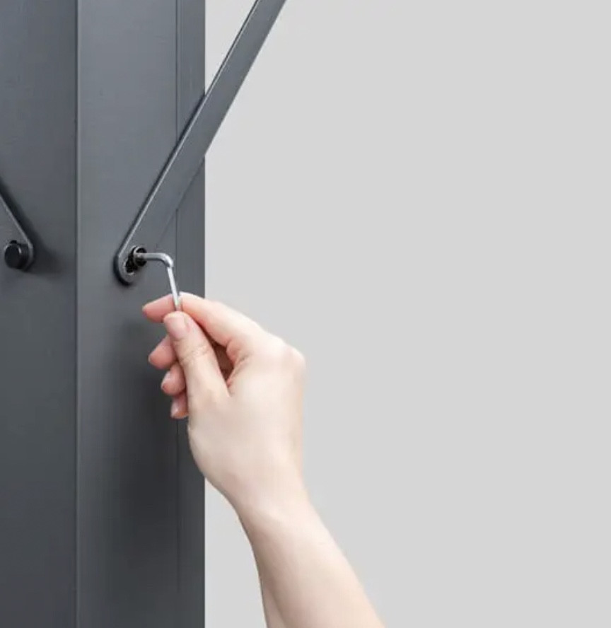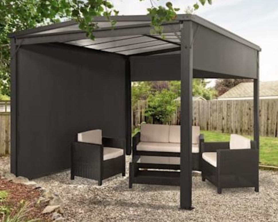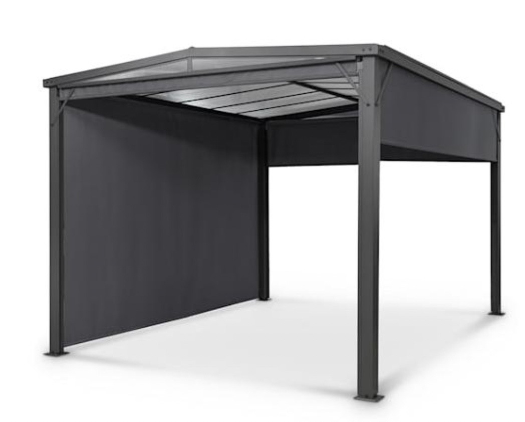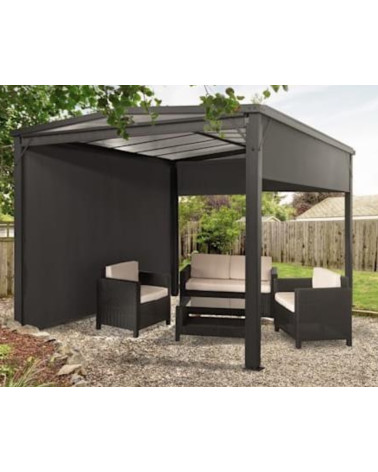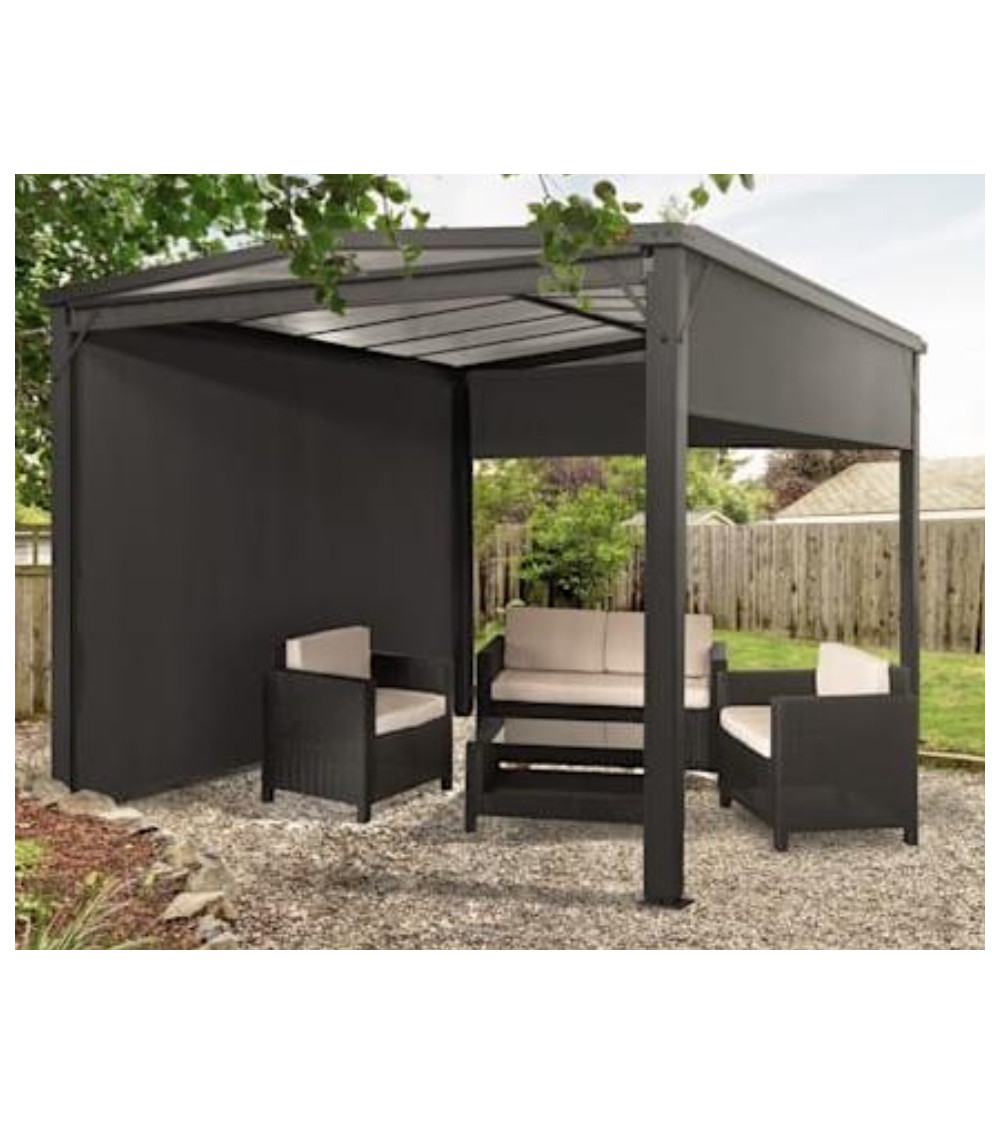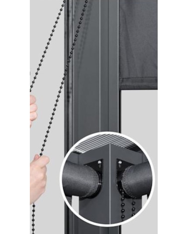 As 4 cortinas laterais em poliéster proporcionam privacidade adicional e podem ser facilmente levantadas ou abaixadas graças a um sistema manual intuitivo.