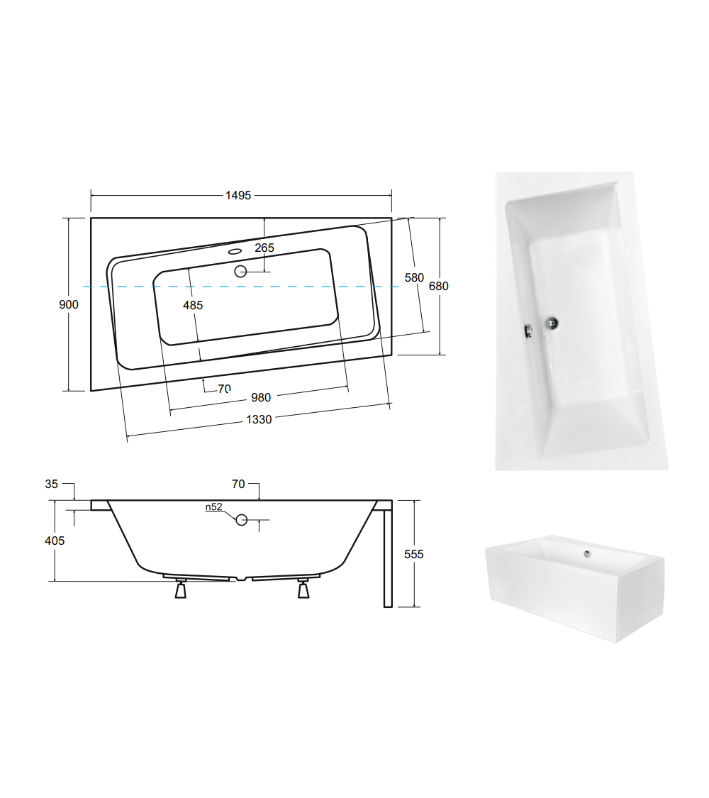 150 x 90 x 68 x 55,5 x 40,5 cm