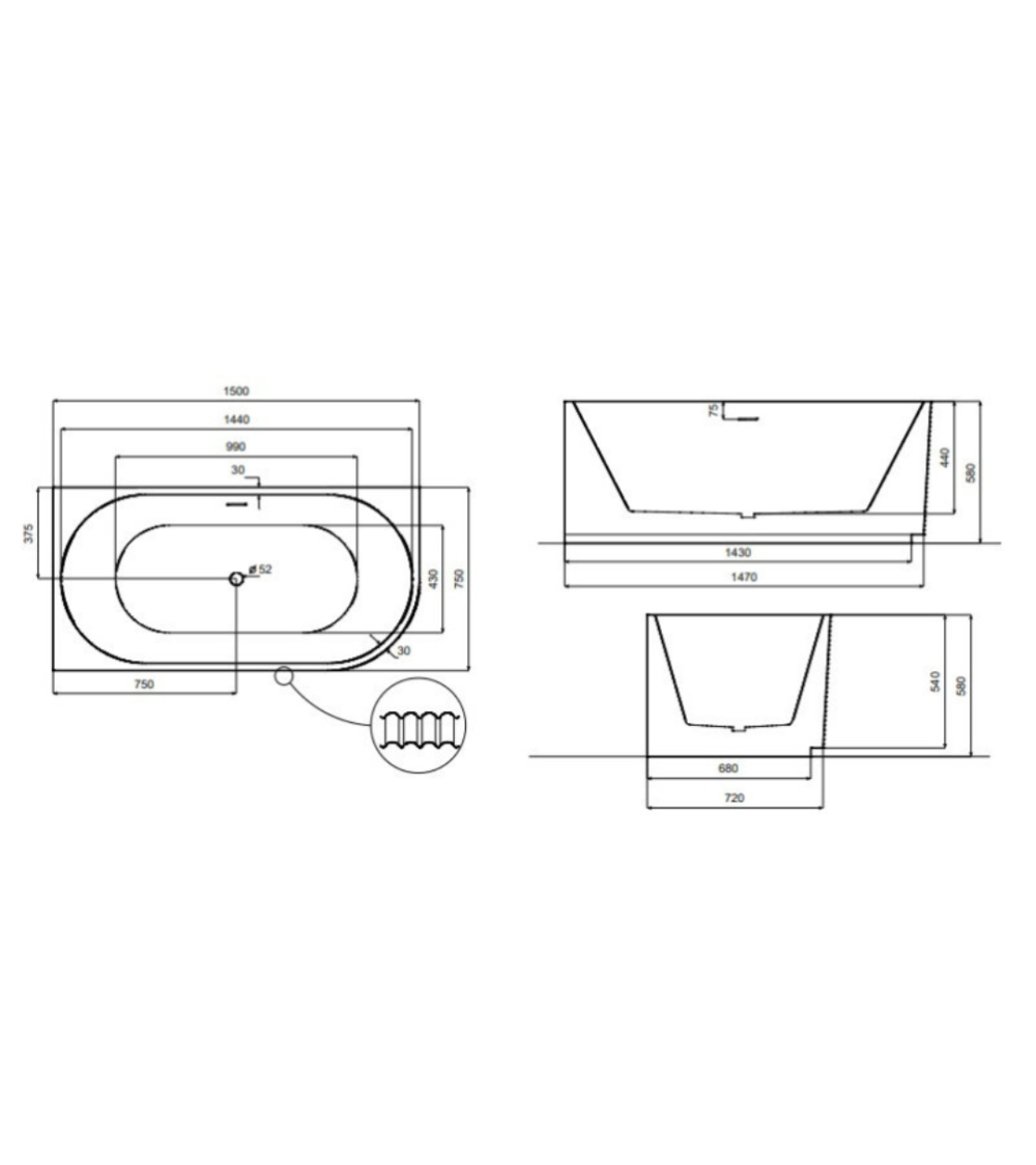 Com dimensões de 150x75 cm, adapta-se perfeitamente a espaços compactos sem comprometer o conforto. O seu transbordamento ultrafino acrescenta um toque prático mantendo uma aparência minimalista.