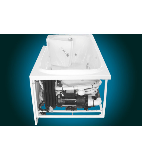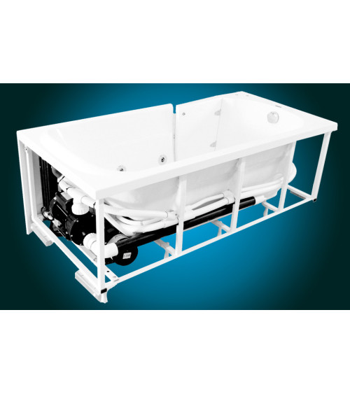 A linha clean desta banheira permite que ela caiba em qualquer tipo de banheiro. A carcaça em acrílico e fibra de vidro assenta numa estrutura de tubos quadrados de aço inoxidável e confere-lhe grande robustez.