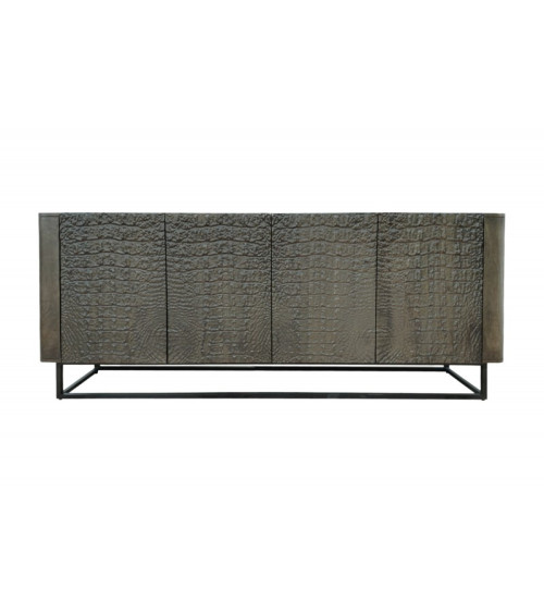 O aparador CROCO é uma obra-prima de design e artesanato, com uma superfície em forma de crocodilo cuidadosamente trabalhada à mão. Este design distinto dá um toque de elegância exótica a qualquer interior, transformando esta peça de mobiliário numa peça central da sua decoração. O corpo do aparador é castanho com apontamentos pretos, enquanto a estrutura é preta, conferindo um toque moderno e industrial.