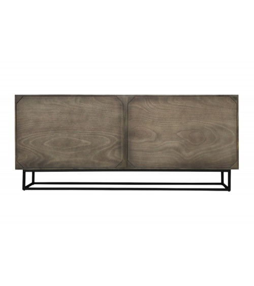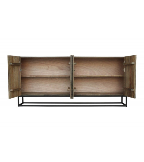 O corpo é feito de madeira de manga, conhecida pela sua resistência e durabilidade. O painel traseiro é feito de folheado de MDF, o que lhe confere um acabamento suave e elegante. A estrutura metálica revestida a pó garante estabilidade e resistência. Cada aparador é único, reflectindo a autenticidade e o carácter da madeira de manga utilizada.