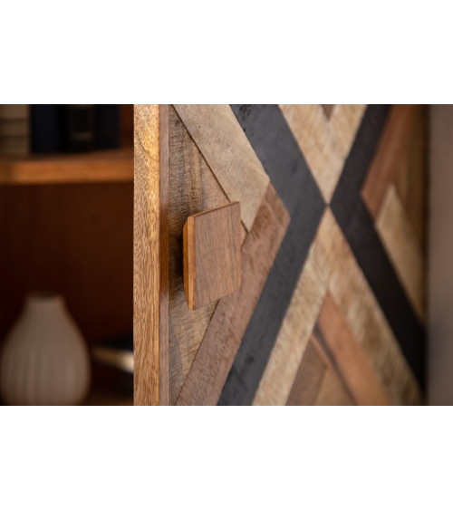 As portas são decoradas à mão com motivos geométricos em forma de cruz. Estes motivos conferem uma dimensão artística e autêntica ao móvel, tornando cada peça única.