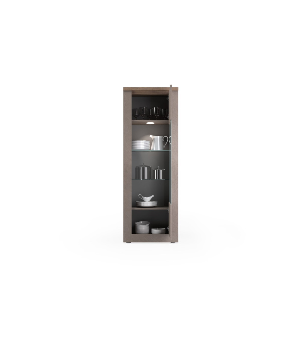 Dois expositores suspensos com prateleiras iluminadas dão um toque verdadeiramente original.