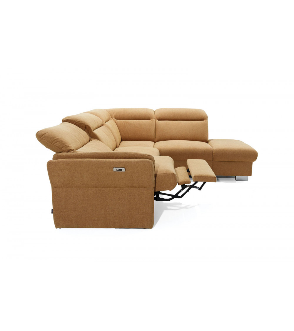 Le canapé RENO est équipé d'un récipient pratique au bout du pouf et d'une fonction de relaxation. Cette fonction est commandée électriquement par des capteurs situés sur la partie extérieure de l'accoudoir.