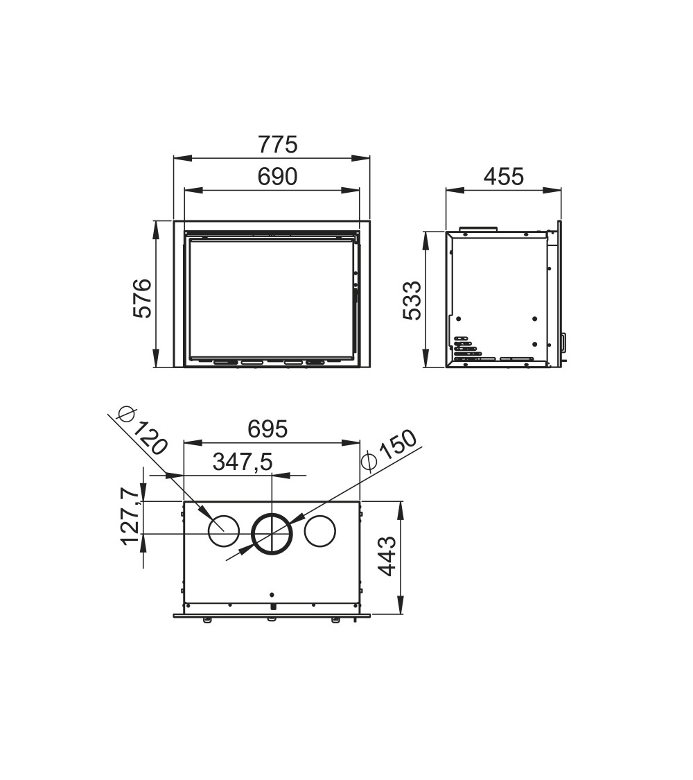 Dimensões úteis da câmara de entrada: 780 x 260 x 318 mm