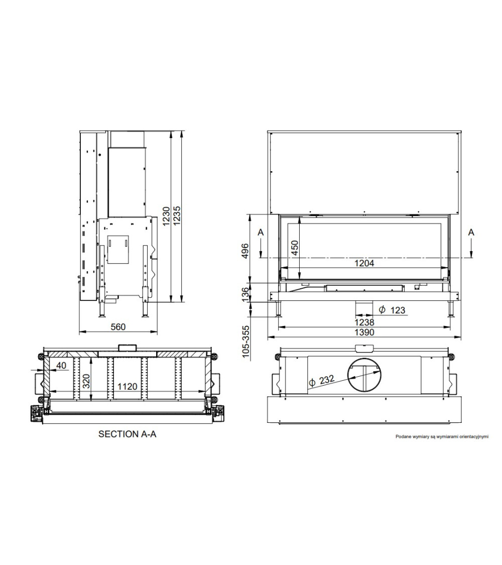 - Diâmetro do tubo de combustão: 230/240 [mm]