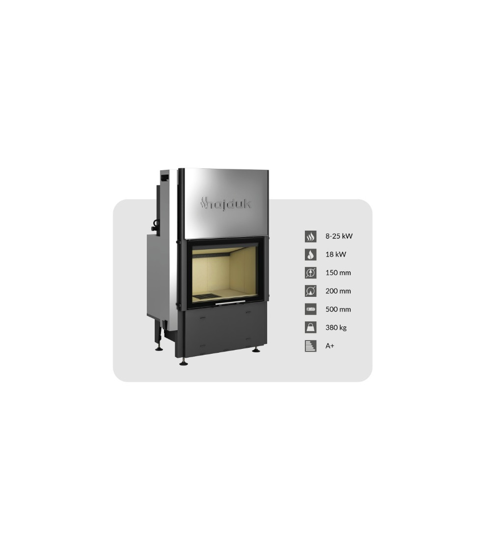Para os amantes de grandes fogos a lenha, o Volcano WTh-18 aceita troncos até 50 cm de comprimento, o que significa menos interrupções para recarregar e mais tempo para desfrutar do calor e da beleza das chamas. Com uma saída de escape de 200 mm e uma entrada de ar de 150 mm, este recuperador garante uma combustão limpa e uma extração de fumos altamente eficiente.