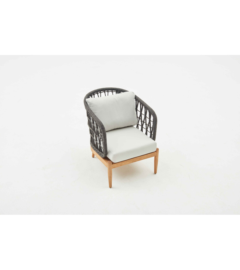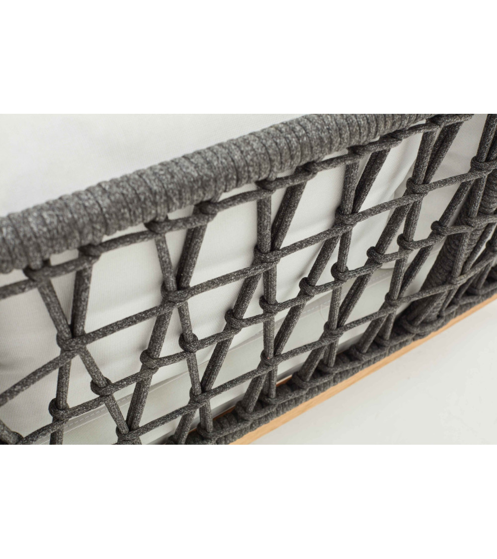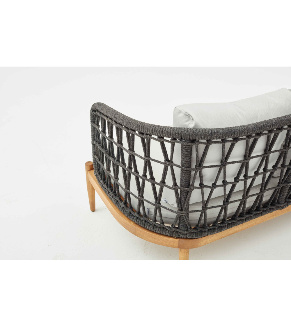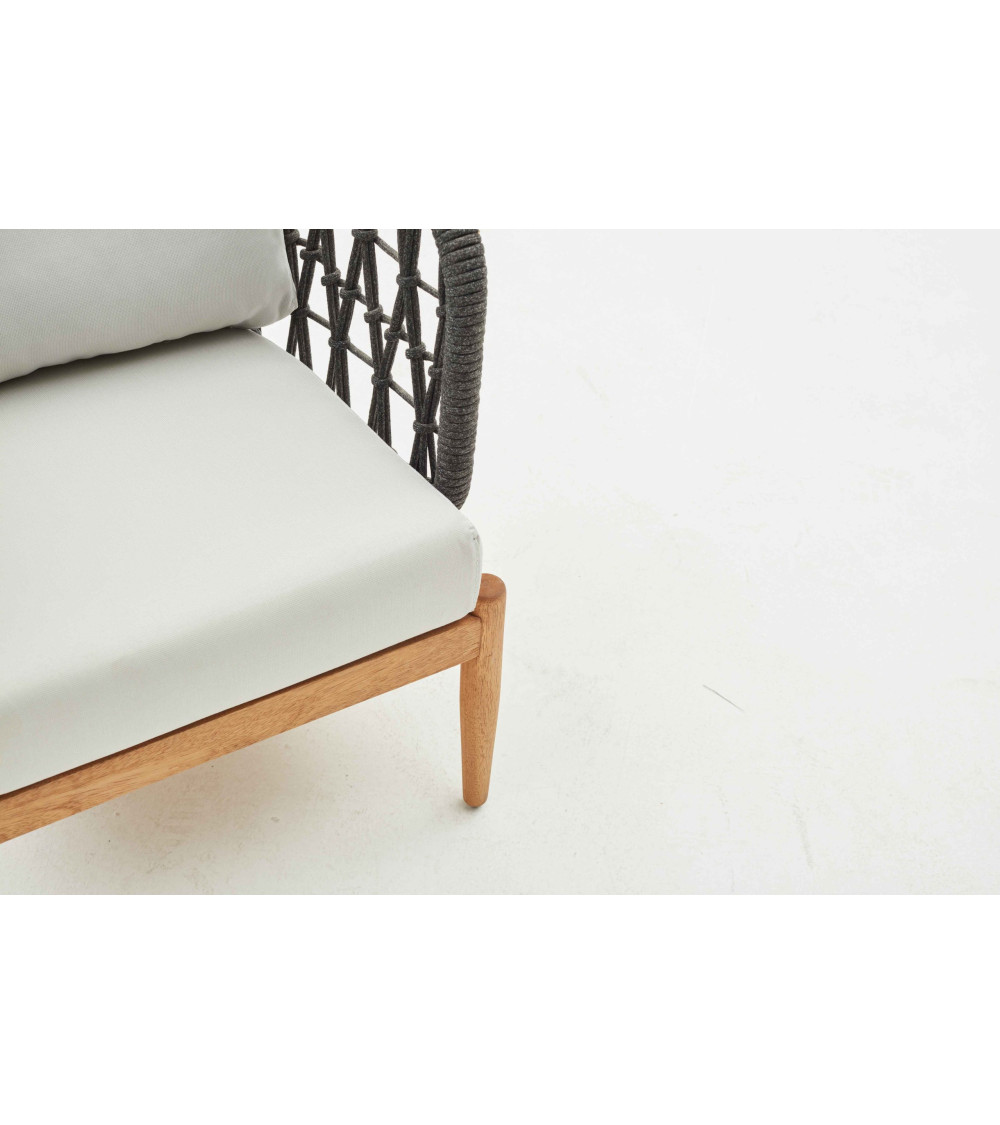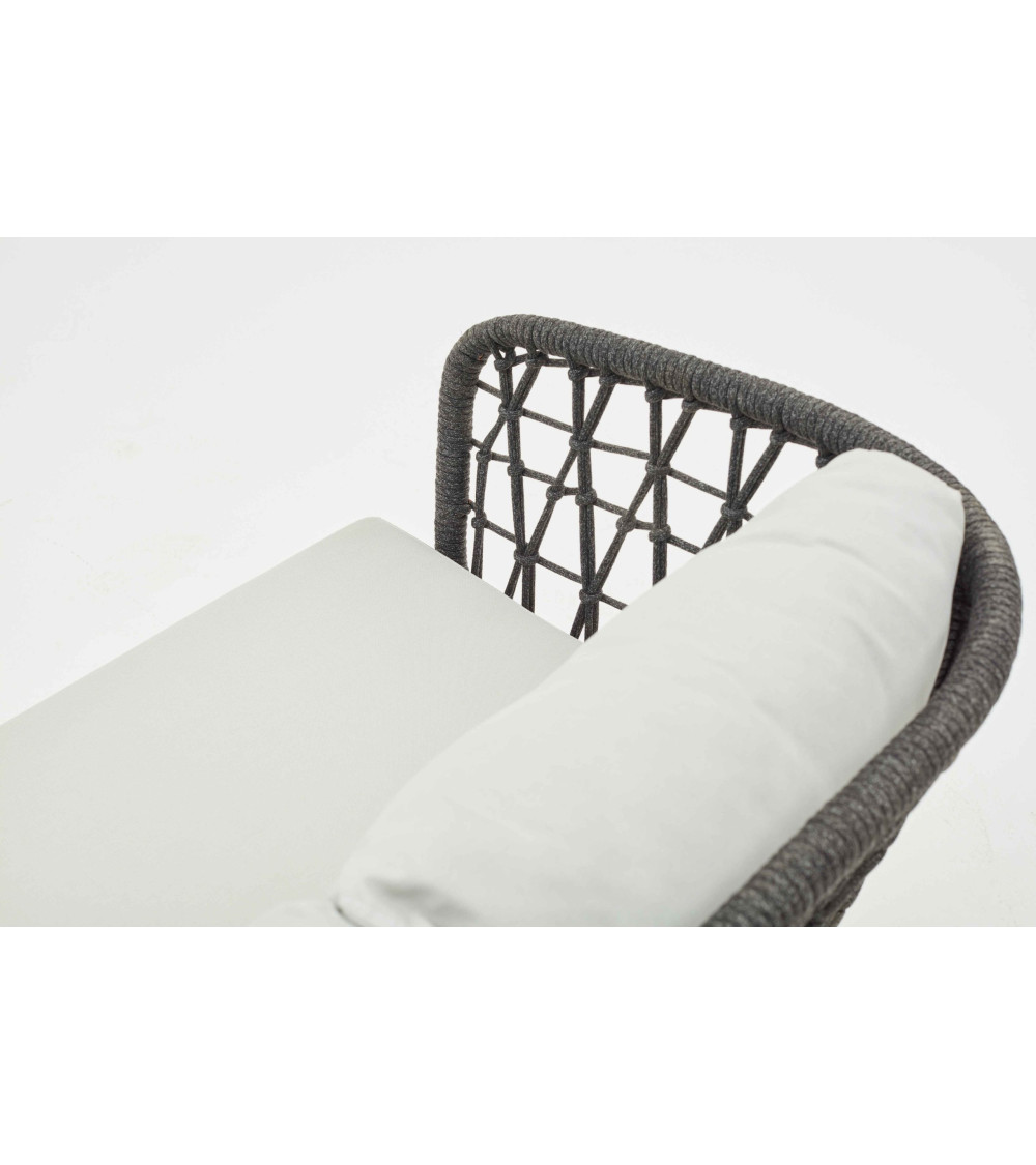 Completando o conjunto, duas poltronas combinando enriquecem este espaço de relaxamento. Também revestidas com um tecido cru elegante e macio ao toque, estas poltronas garantem um conforto envolvente. O seu design ergonómico, combinado com o encosto em tecido cinza, cria um contraste harmonioso e traz um toque sofisticado a todo o mobiliário de jardim. Estas poltronas são perfeitas para relaxar enquanto desfruta da doçura de uma noite de verão ou de uma tarde ensolarada.