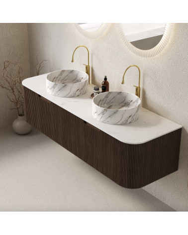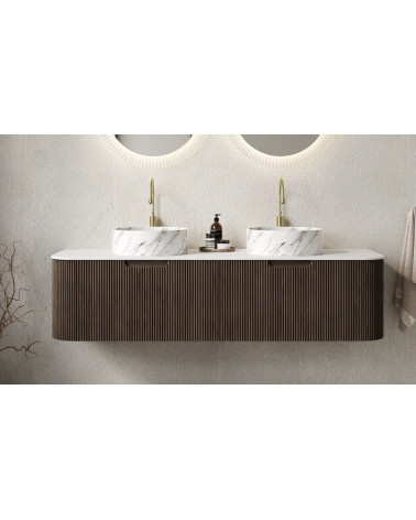 Este conjunto BUENO pertence a uma coleção que impressiona pelo seu design! Em MDF de alta qualidade, as suas fachadas lacadas realçadas por tons de madeira conferem ao conjunto uma simplicidade delicada e luxuosa.