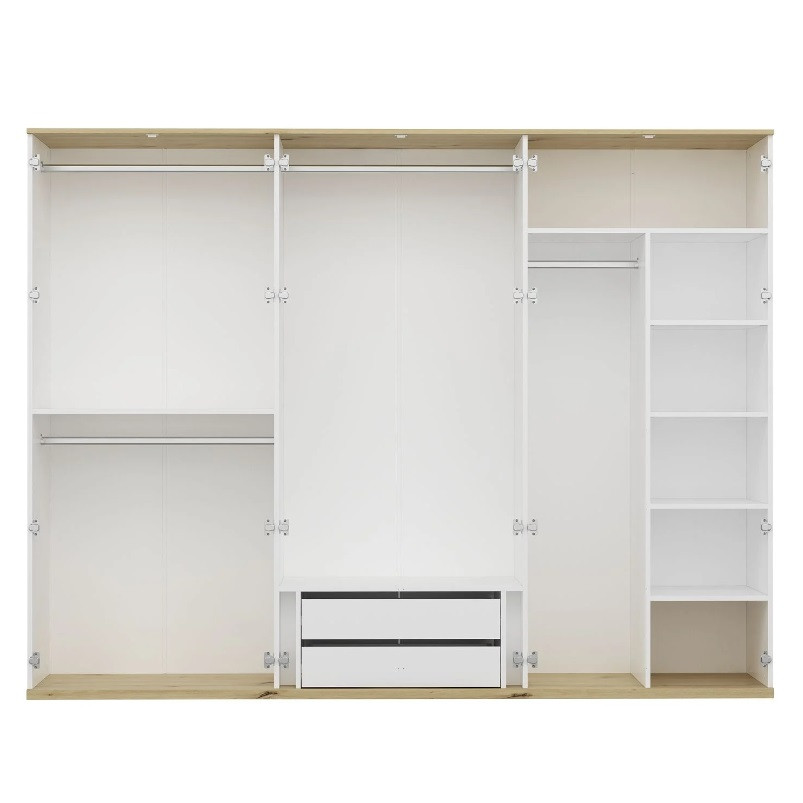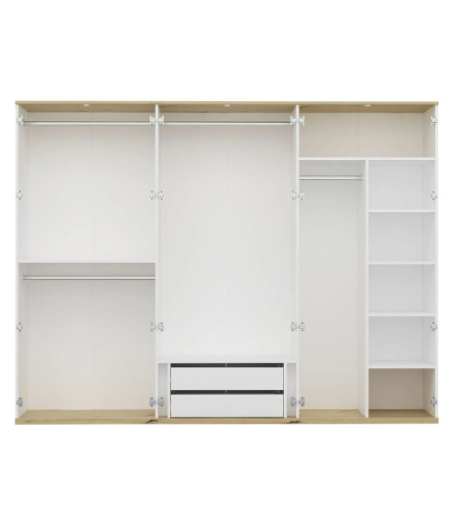 Dois roupeiros ideais para guardar peças compridas como vestidos, casacos ou fatos e dois roupeiros mais pequenos, perfeitamente adequados para guardar peças de comprimento moderado, como camisas, saias ou casacos, oferecendo assim uma organização óptima e prática da sua roupa.