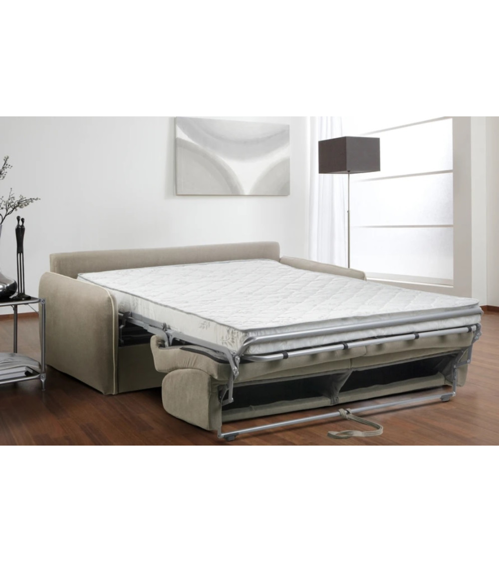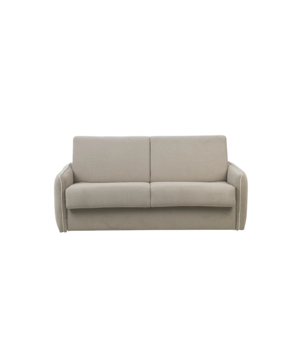 Este sofá, com o seu assento macio e o seu encosto confortável, também o vai encantar com a sua cama igualmente confortável , tal como uma verdadeira cama, graças à sua base de ripas e ao seu colchão de densidade 27 kg/m3.